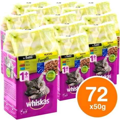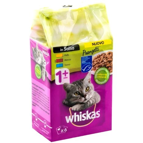 Questi gustosi bocconcini Whiskas donano il giusto apporto energetico e, grazie al loro sapore delicato, sono una pietanza che i gatti ameranno.
