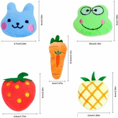 DESIGN SVEGLIO: il pacchetto include 5 giocattoli con erba gatta, si tratta di fragole, rane, conigli, ananas, carote, perfetti per gatti, gattini, cuccioli, il miglior regalo per animali domestici.