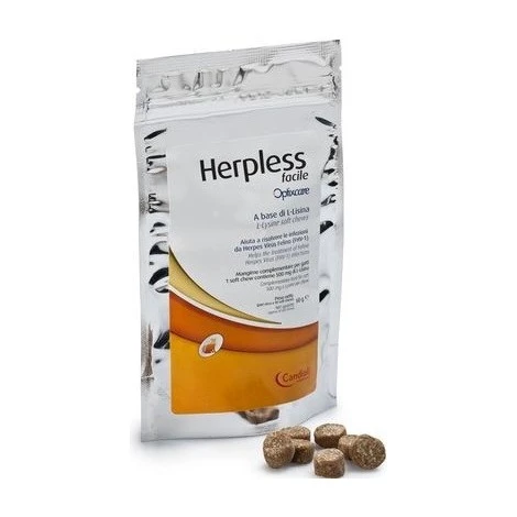 Candioli herpless facile 60 gr, aiuta a risolvere le infezioni da Herpes Virus Felino (FHV-1) formulazione in morbidi chews