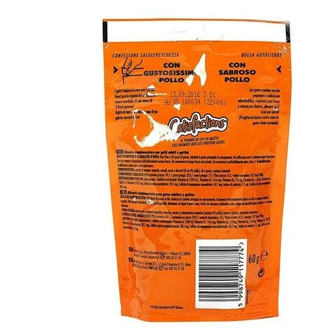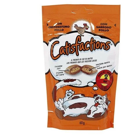 CATISFACTIONS® è una gamma di irresistibili snack con cui potrai premiare il tuo gatto in ogni momento della giornata. Hanno una gustosa consistenza. croccante fuori e morbida all’interno. La gamma CATISFACTIONS® è presente in vari gusti e formati per poter soddisfare i desideri di ogni gatto!