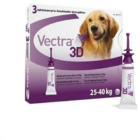 Il suo ampio spettro (protegge davanti a pulci, zecche, zanzare, flebotomi e mosche), velocità di azione e il suo comodo applicatore si distinguono tra i loro vantaggi. mese dopo l’amministrazione. Sicurezza dimostrata nei cuccioli da 7 settimane e 1,5 kg di peso. 3D® Vectra contiene 3 ingredienti attivi per la protezione completa: piriproxicene: IGR (inibitore della crescita degli insetti), inibisce la riproduzione delle pulci impedisce alle uova e alle larve di evolvere. Durata fotoestabile e lunga. Dinotefuran: INSECITICO AZIONE FAST. Agire per contatto. Modalità di azione unica. Permetrin: insetticida e carezza. Azione completa come repellente. EFFICATTO EFFETTO DEL CONTENZIONE DEL CONTATTO. Molto veloce rispetto alle pulci: nei primi 5 minuti il numero di pulci che si nutrono. Uccidi le pulci nelle prime 2 ore dopo l’infestazione. Uccidi gli stadi immaturi delle pulci per 2 mesi. Respell e uccidi le zecche: efficace di fronte alle zecche più frequenti in Spagna: Rhipicephalus sanguineus, Ixodes Ricinus e Dermacentor Reticulatus. Respelli e uccidere le zecche in 24 ore. Effetto repellente: quando le zecche entrano in contatto con i capelli, sono a disagio, tornano indietro e se ne vanno (piedi caldi). Effetto abbattimento. Mantiene la sua efficienza della carezza per 1 mese. 1 mese di protezione contro i flebotomi: respingere flebotomi, mosche e zanzare dal primo giorno e per 1 mese. Azione repellente di fronte a Phlebotomus perniciosus, il vettore principale della leishmaniosi canina dal primo giorno. 3D® Vectra ha un’efficacia anti-alimentazione rispetto a Culex Pipiens maggiore del 98% per 1 mese. Vectra 3D® respinge e uccide Aedes aegypti (trasmettitore di difilasi) e stomossys calcitrans quando entrano in contatto con il cane. 3d® Vectra puoi trovarlo in 5 dimensioni diverse, con 3 pipette su ciascun contenitore: per cani da 1,5 a 4 kg. Per cani da 4 a 10 kg. Per i cani da 10 a 25 kg. Per cani da 25 a 40 kg. Per cani di oltre 40 kg. Formato: cani di grosso 25-40 kg, 3 pipette.