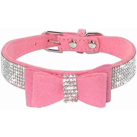 - Collare per cani in cristallo, fibbia con diamanti scintillanti, 5 occhielli regolabili.