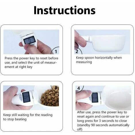 Display digitale LCD: – Il misurino con display è ideale per misurare il peso del cibo per animali e dell’acqua. NOTA: assicurati di tenerlo in posizione orizzontale poiché influirà sulla lettura.