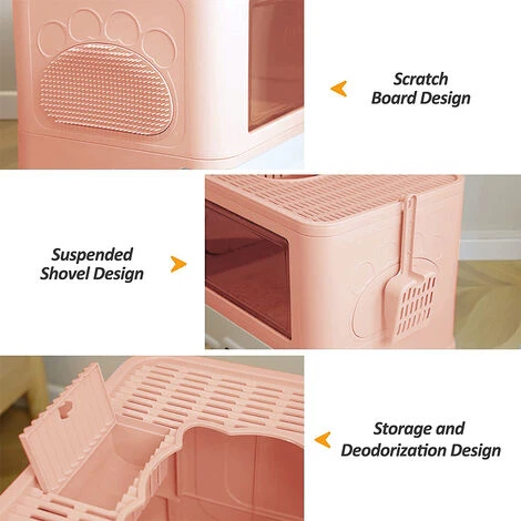 3. Ingresso ed espulsione frontale, ampia area anti-sabbia, grande foro e ampia area, impediscono ai gatti di trasportare sabbia, ambiente pulito.