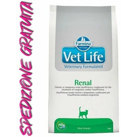Farmina Vet Life Renal è un alimento dietetico completo per gatti, indicato per il supporto della funzione renale in casi di insufficienza renale cronica o temporanea.