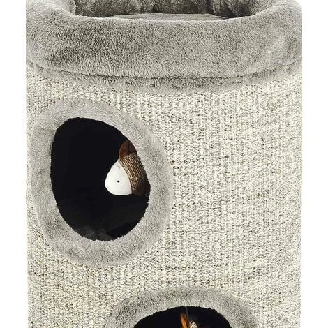 Tiragraffi colonna da grattare con giochi per gatti e con pesciolini appesi