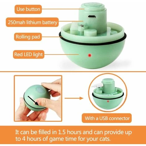 【Uso a lungo termine】 – La palla giocattolo per gatti richiede 4 ore di gioco per i tuoi gatti dopo una carica completa di circa 1,5 ore. Non preoccuparti dei problemi causati dal rapido consumo energetico.