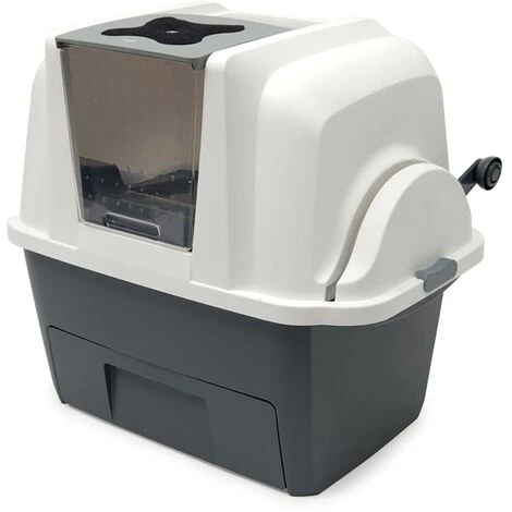 - Design pratico: I rifiuti del vostro gatto vengono rimossi in modo efficiente e gettati nel cestino estraibile sottostante tirando su la leva sul lato del contenitore per la lettiera. La lettiera pulita e setacciata viene versata nuovamente nel contenitore per la lettiera.