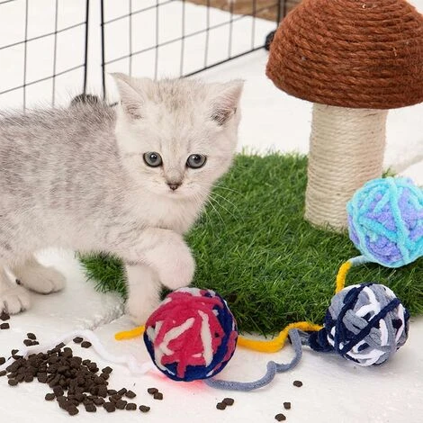 Materiale di alta qualità: il giocattolo per gatti a palla è realizzato in lana sana, tessuto a mano, morbido e confortevole, resistente al morso e all’usura. Quindi non è solo sicuro quando il tuo gatto sta giocando, ma anche quando il tuo gatto digrigna o si lava i denti.