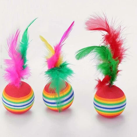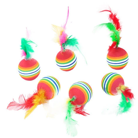 - Ci sono 4 palline di gatto in morbida schiuma arcobaleno con piume. Leggero e facile da afferrare.