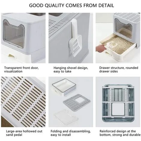 - 4.Struttura del cassetto: la lettiera per gattini può essere completamente rimossa, facile da pulire e cambiare la lettiera per animali domestici. Puoi mantenere tutte le scatole pulite, ordinate e prive di odori.