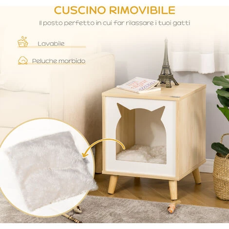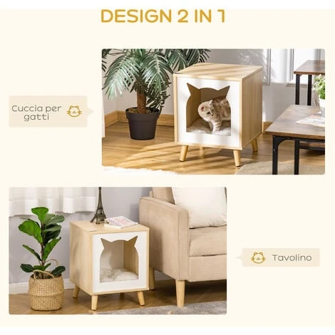 Lo spazio perfetto in cui far riposare i tuoi mici? La casetta per gatti 2 in 1 PawHut! Non solo la puoi usare come una cuccia per gatti ma anche come un pratico tavolino in diversi ambienti della tua casa. Il design semplice e i colori neutri ti permettono di abbinare la cuccia a diversi tipi di arredamento. Resistente e stabile, questa casetta sarà la perfetta oasi di relax per i tuoi gatti!