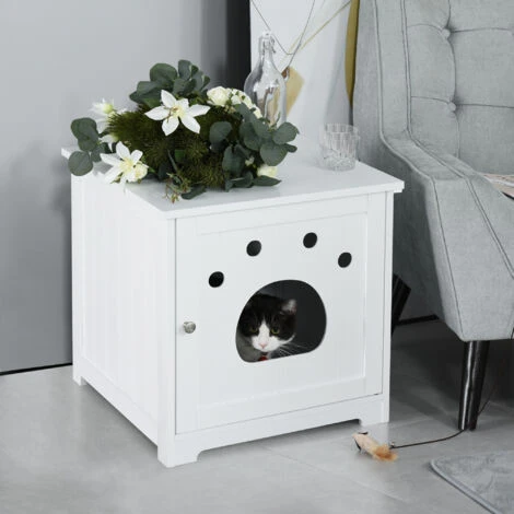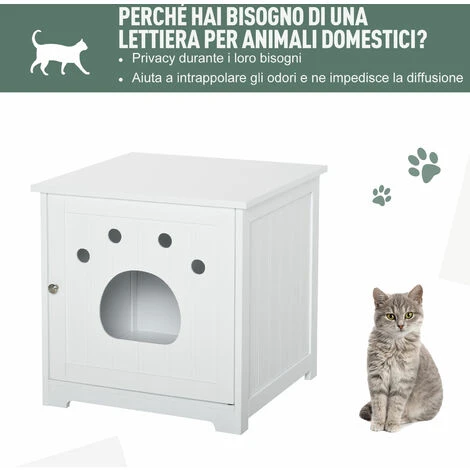 Cerchi una cuccia confortevole e sicura per il tuo gatto? Oppure un pratico mobile per lettiera? PawHut ha quello che fa per te! Questo pratico mobile multiuso è ideale come cuccia per gatti e come contenitore per tenere riparata la lettiera, ma puoi usarlo anche come cuccia per cani di piccola taglia, tavolino vicino al divano e ovunque desideri. Il mobile è solido e facile da pulire e l’anta ha un buco delle dimensioni ideali per un gatto. Fai sentire al sicuro i tuoi piccoli amici a 4 zampe con questa casetta multiuso!
