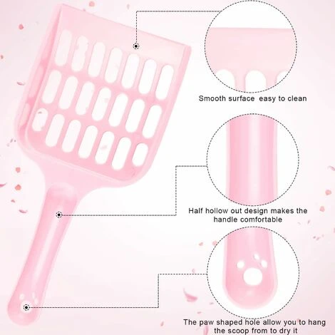 Facile da pulire: la superficie liscia della lettiera per gatti è comoda da pulire, basta pulirla con un panno umido o risciacquare con acqua; Il foro a forma di zampa permette di appendere il cucchiaio per asciugarlo