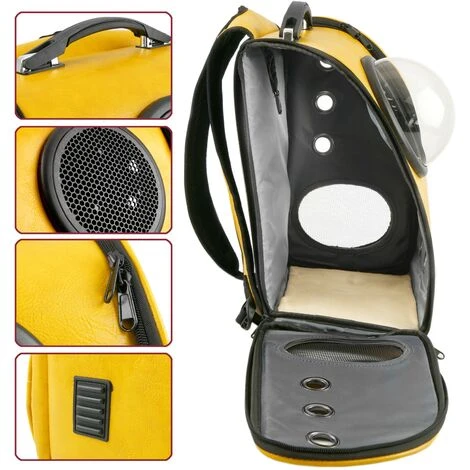 - CARATTERISTICHE: Zaino per animali domestici con finestra frontale trasparente sporgente e borsa in ecopelliccia gialla; Facile da montare e smontare, con possibilità di riporlo piegato senza occupare spazio; Si apre con cerniere per rendere molto facile per il tuo animale domestico entrare e uscire come desiderato.