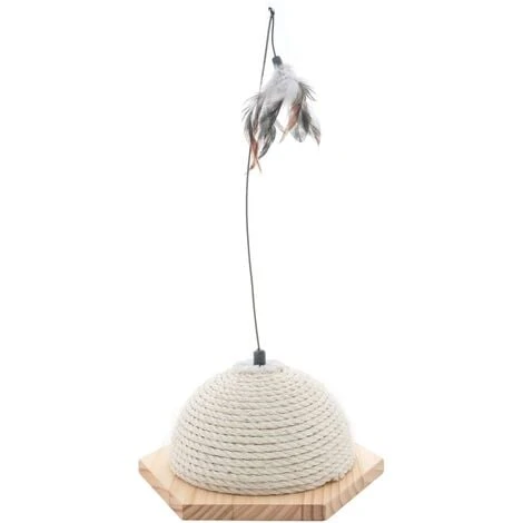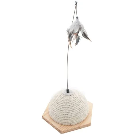 Il tiragraffi dalla forma creativa è un modello elegante che permette al vostro gatto di grattare a suo piacimento. Ha una base in legno e su di essa è posizionato un tiragraffi semisferico. C’è anche una bacchetta di piume per un maggiore divertimento. I vostri gatti si divertono sia a grattare che a giocare con il giocattolo su questo palo.