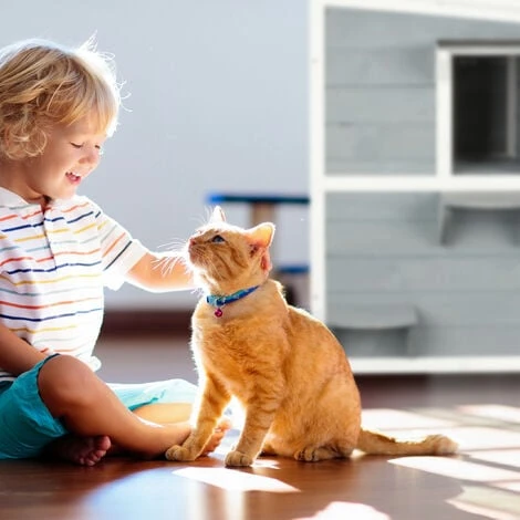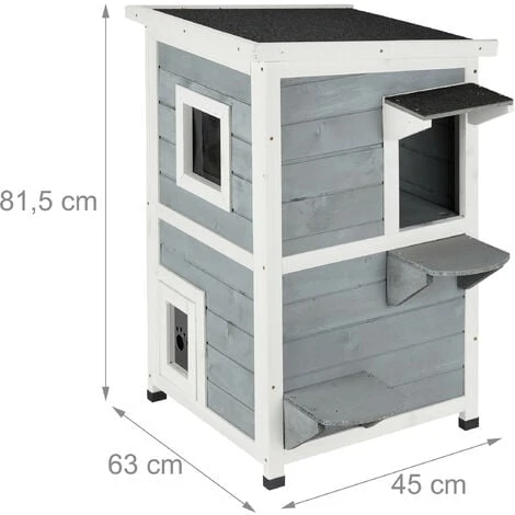 Hai due gatti in casa? Regala loro una casa spaziosa! La villetta in legno è dotata di 2 piani, 3 entrate e 2 ripiani per facilitare l’arrampicata dei tuoi amici a quattro zampe. Il tetto è realizzato in asfalto resistente alle intemperie e i piedini fanno in modo di proteggere la casa dal pavimento umido, sporco o bagnato. Grazie al tetto ribaltabile puoi pulire la casa in modo semplice e veloce.