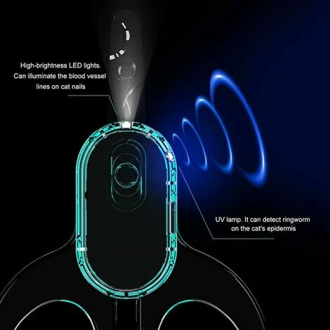 【FORBICI PER UNGHIE GATTO MULTIFUNZIONALI PROFESSIONALI】 Tagliaunghie multifunzionali per gatti, con luci LED e UV, le luci LED possono illuminare i vasi sanguigni sulle unghie di gatti e altri piccoli animali e prevenire danni ai vasi sanguigni del gatto durante il taglio delle unghie. Le lampade UV possono essere utilizzate per controllare l’epidermide dell’animale domestico per la tigna.
