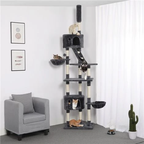 - Albero Tiragraffi Alto: questo albero per gatti alto 255 cm permette a 2-3 gatti adulti di giocare allo stesso tempo. Espande verticalmente lo spazio delle attività utilizzabili e offre più spazio per gli animali domestici per arrampicarsi ed esplorare.