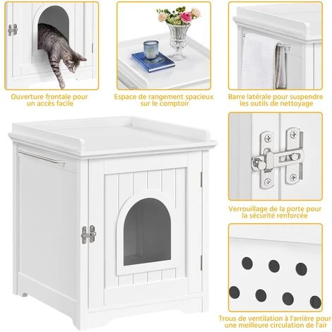 ✔️ Attenzione ai dettagli: la barra laterale è utile per tenere i panni per la pulizia a portata di mano e in modo ordinato. 7 fori sul retro assicurano che la lettiera sia ben ventilata. Il fermo magnetico della porta e la serratura garantiscono sicurezza e che la casetta resti chiusa. 4 piedini di gomma antiscivolo aiutano a stabilizzare il prodotto e proteggono anche il pavimento da eventuali graffi.