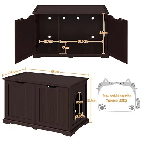 ✔️ Lettiera decorativa: con questa lettiera, è possibile nascondere il vasino dell’animale domestico e separare gli articoli del tuo animale domestico dagli altri mobili della casa. Lo spazio interno, con 95 cm di lunghezza e 53,5 cm di larghezza, è abbastanza spazioso per le lettiere di piccole e grandi dimensioni.